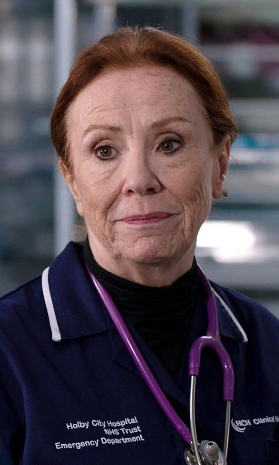 Melanie Hill in a still image from Casualty© CREDIT LINE:BBC STUDIOS