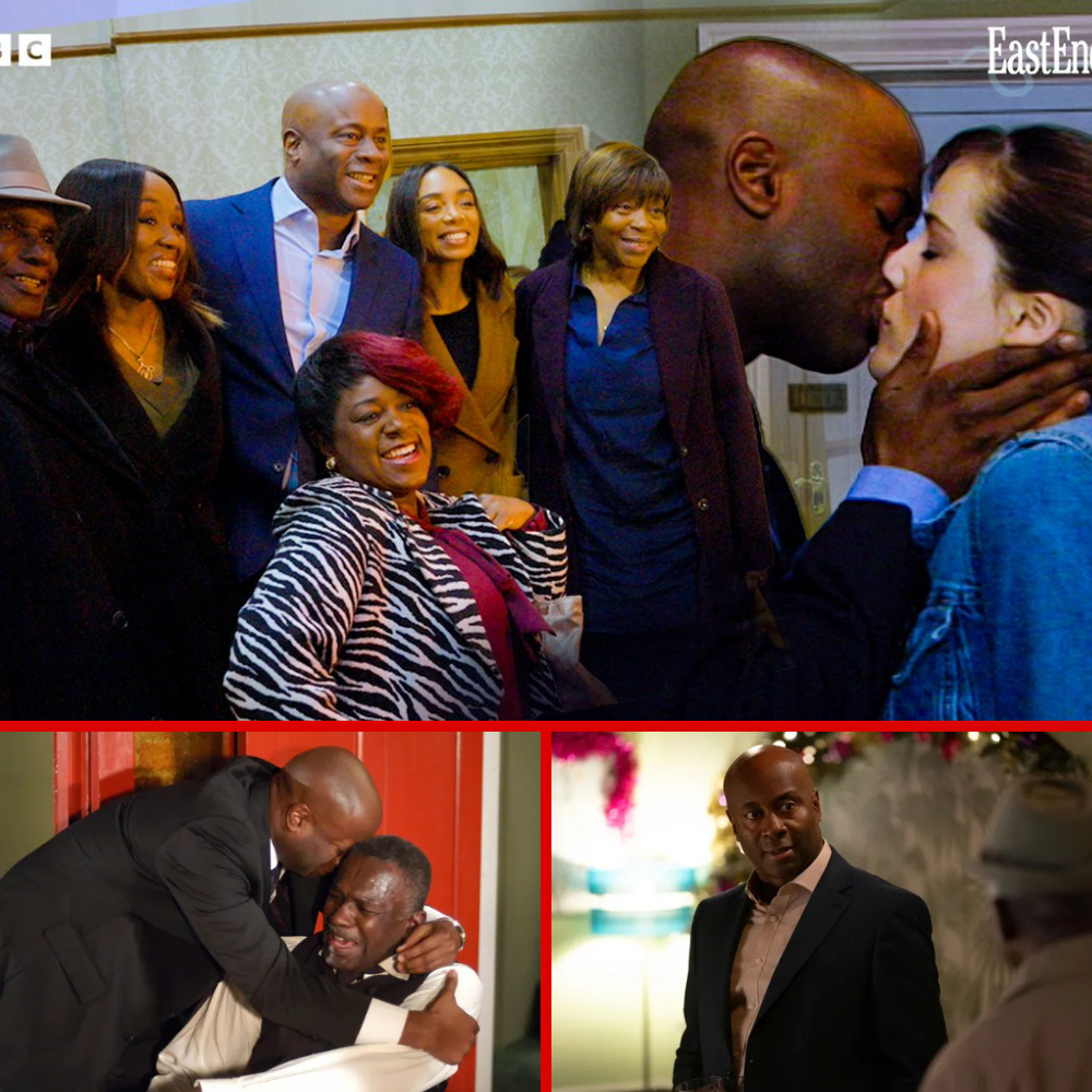 Surrounded by his on-screen family, Jasmine, Patrick, Chelsea, Denise Fox (Diane Parish), Yolande Trueman (Angela Wynter) and Kim Fox (Tameka Empson) who clapped, cheered and re-affirmed their love for Nicholas, he pulled them all in for a family photo.