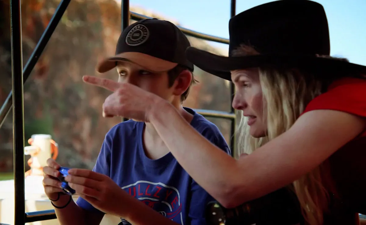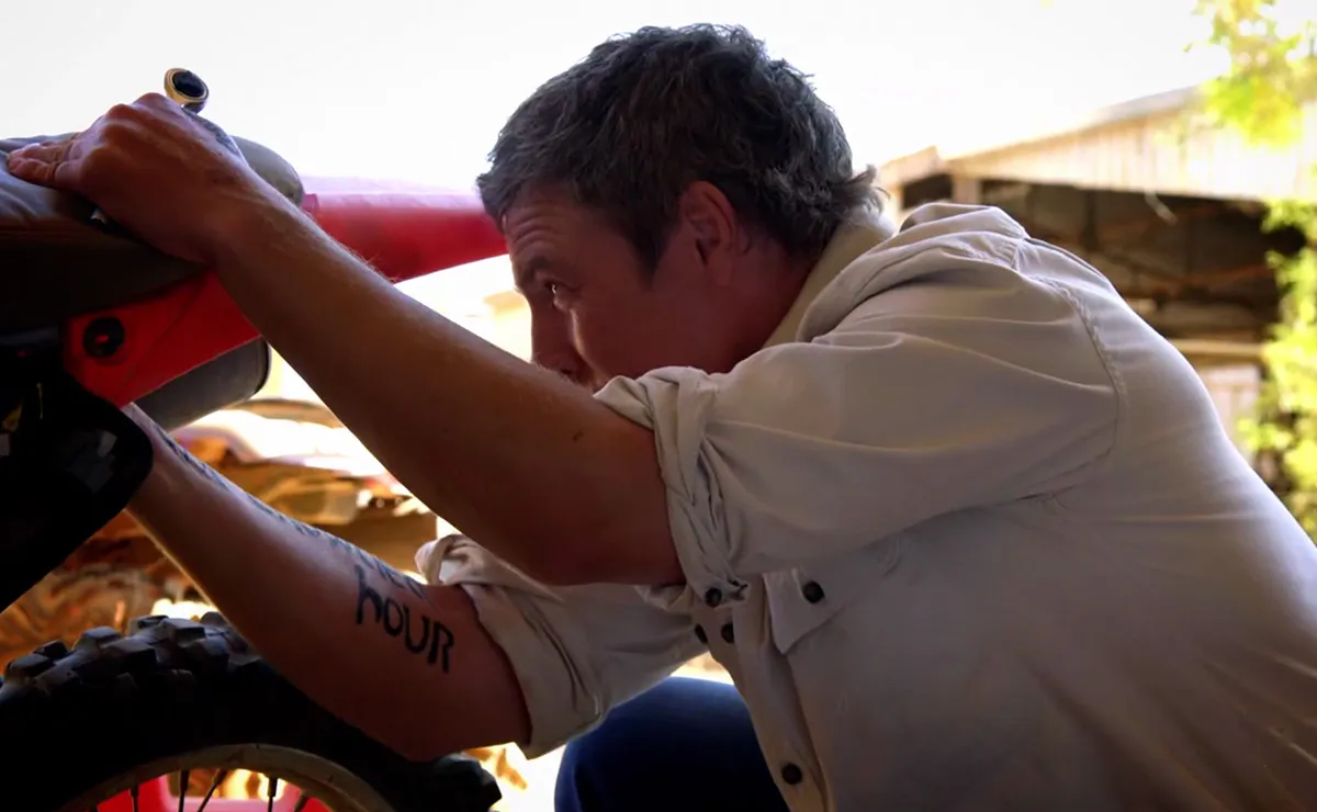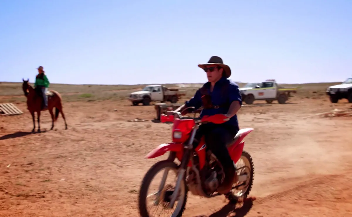 We’ve Brax riding through a cattle ranch on a dirt bike, before greeting Ricky with a “missed me?”